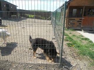 "Bella, die nun Ella gerufen wird, ist eine ganz sanfte Hündin. Im Haus ist sie ruhig und schläft die meiste Zeit. Im Garten buddelt sie gerne, dreht ab und an ihre Runde und legt sich dann im Gartenhäuschen ab. Wenn sie spielt, geht das nur mit viel Getöse und Gegrummel. Sie spielt halt einfach laut, ist aber vorsichtig dabei. Es gibt keine blauen Flecke oder Kratzer. Draußen kann sie im Feld gut ohne Leine laufen. Jagdtrieb ist ganz minimal vorhabenden, wobei sie wohl das Jagen an sich auch nicht kennt. Sie hat Angst vor LKW, teilweise auch PKW oder lauten Motorrädern. Bei Gewitter verkriecht sie sich in der hintersten Ecke und rührt sich nicht mehr. Auto fahren selbst ist kein Problem. Sie muss aber in die Box.