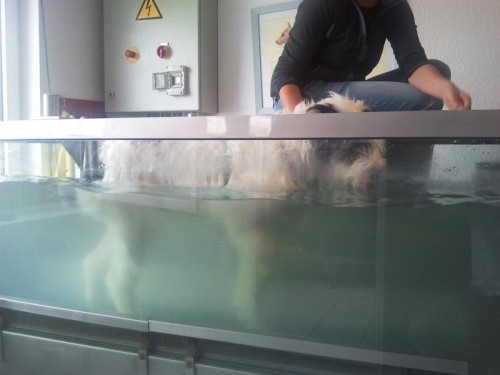 Nach der Operation bekam sie ua. Physiotherapie auf dem Wasserlaufband.