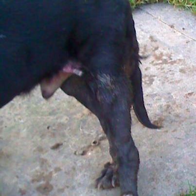Lazar hat sich wohl mit einer der Katzen geprügelt... jedenfalls hatte er eine hübsch suppende Wunde am Hinterbein.