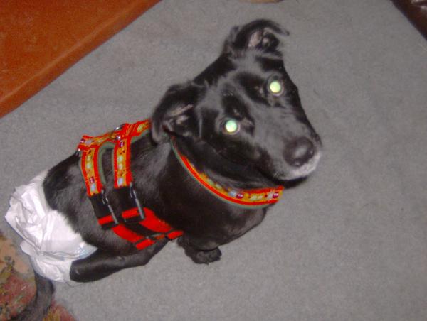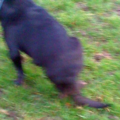 Ansonsten ist Lazar verfressen, und er zieht sich mit den Vorderbeinen umher. Die Hinterbeine sind schon wundgescheuert... Die Muskeln der Hinterbeine sind atrophiert, und seine Wirbelsaeule sieht jetzt irgendwie "spitzwinklig" gebogen aus, nicht gut.