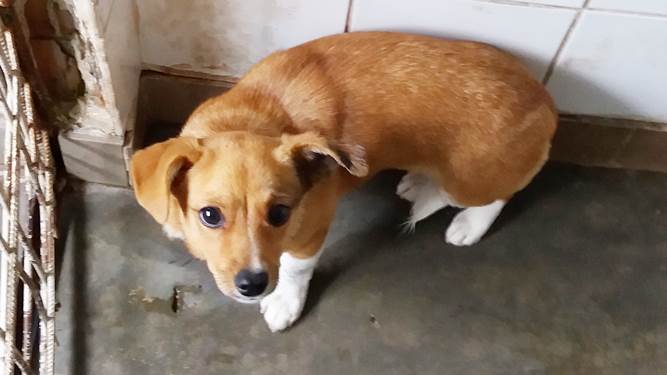 Alina schätzt sie eher jünger, so ca. 4,5 bis 5 Monate alt und sie hat einen Nabelbruch.
