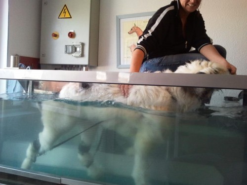 Nach der Operation bekam sie ua. Physiotherapie auf dem Wasserlaufband.