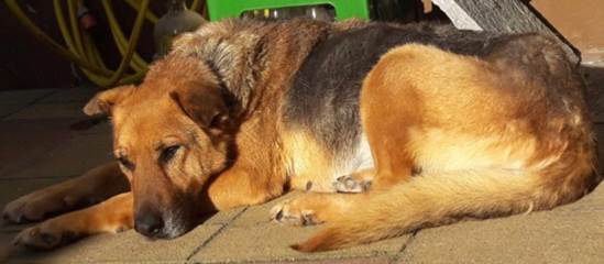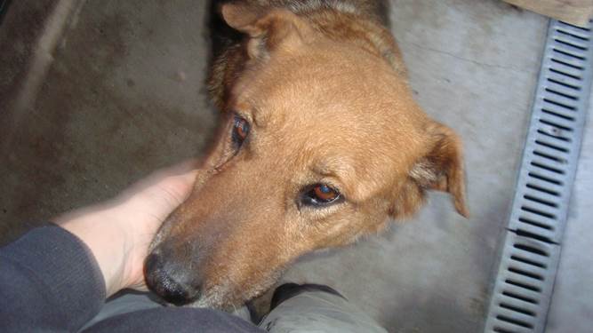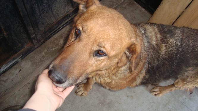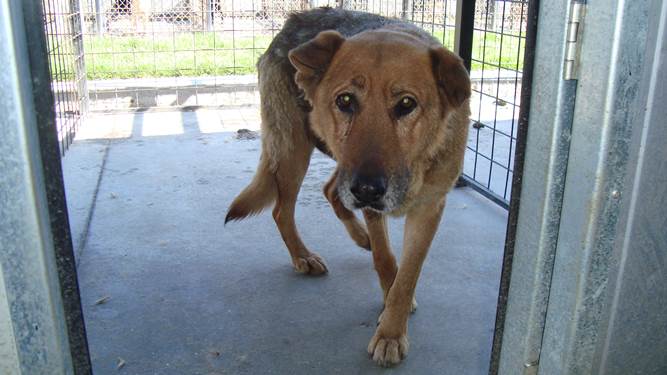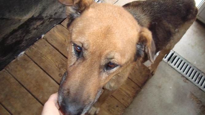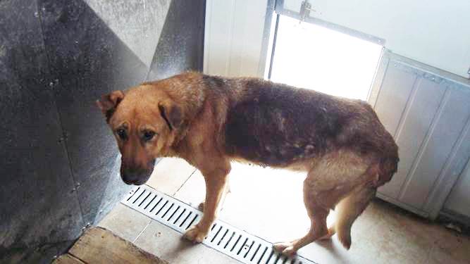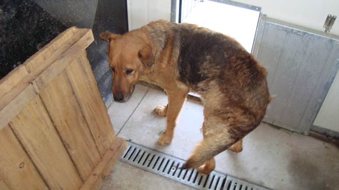 "Rose ist eine Hündin obere mittlerer Größe, ca. 10 Jahre alt, zu dünn und mit einem kränklichen Aussehen.