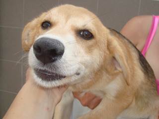 "Clara ist der größte Welpe im Außenzwinger 1, hat eine dünne Statur, ein lustiges und süßes Gesicht. Sie ist ein bisschen schüchtern, aber ist geneigt mit Menschen zu interagieren und kommunizieren,